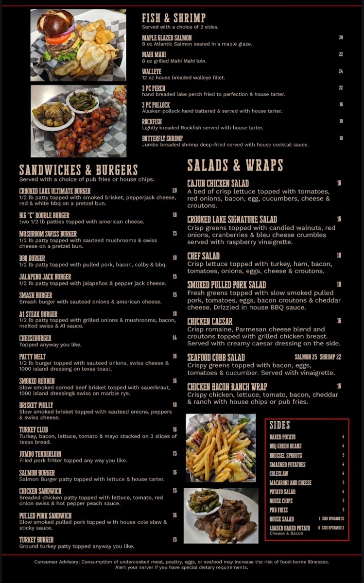Maple glazed pork chop served with choice of one side: pub fries, house chips, BBQ green beans, Brussels sprouts, potato salad, coleslaw, house salad, or potatoes (baked/smashed).